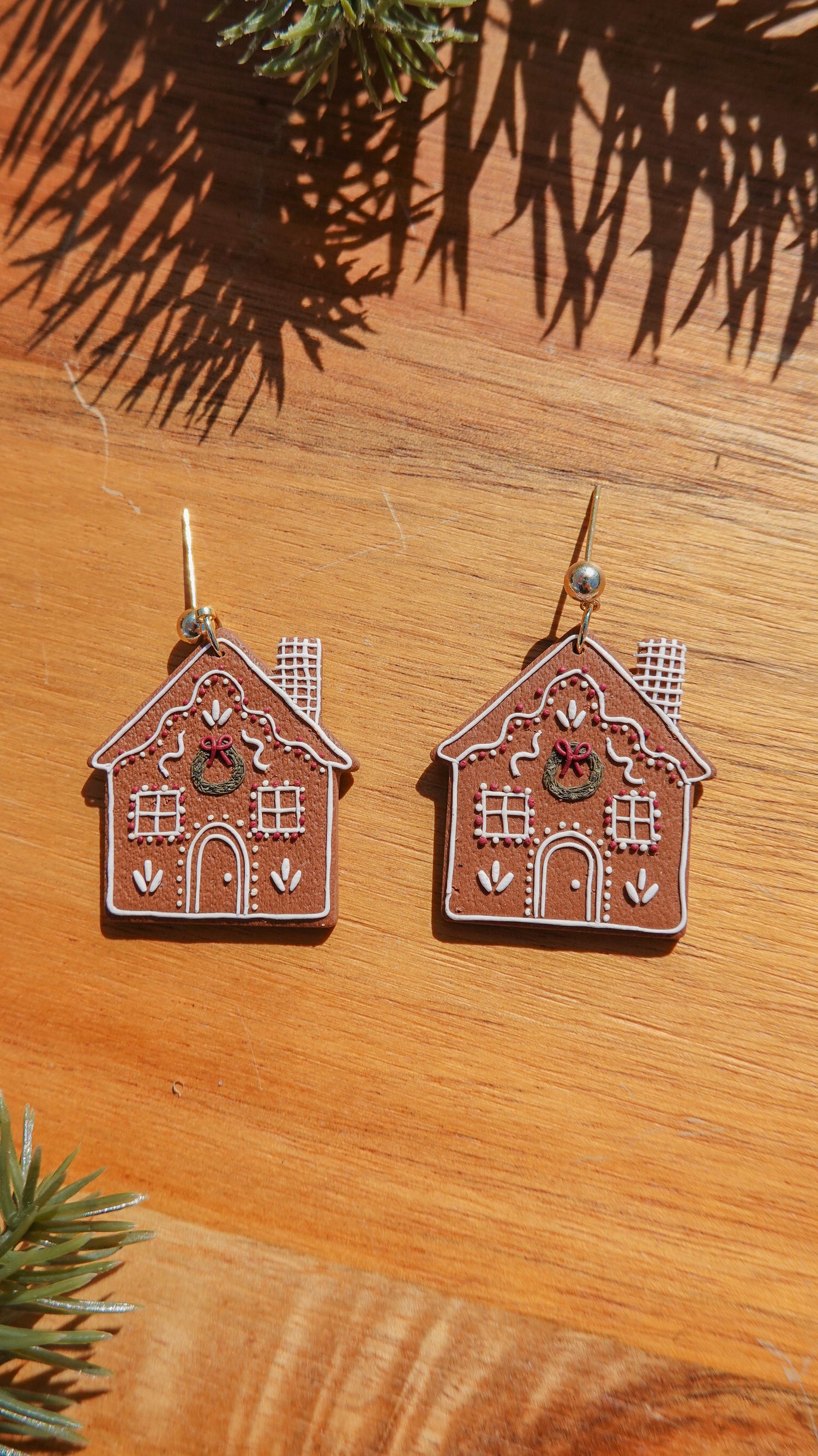 Add a sprinkle of sweetness to your holiday style! These handmade polymer clay earrings are shaped like charming gingerbread houses — complete with frosted details, wreaths, and cozy cottage vibes. Perfect for festive outfits, cookie swaps, or gifting to your favorite holiday enthusiast.