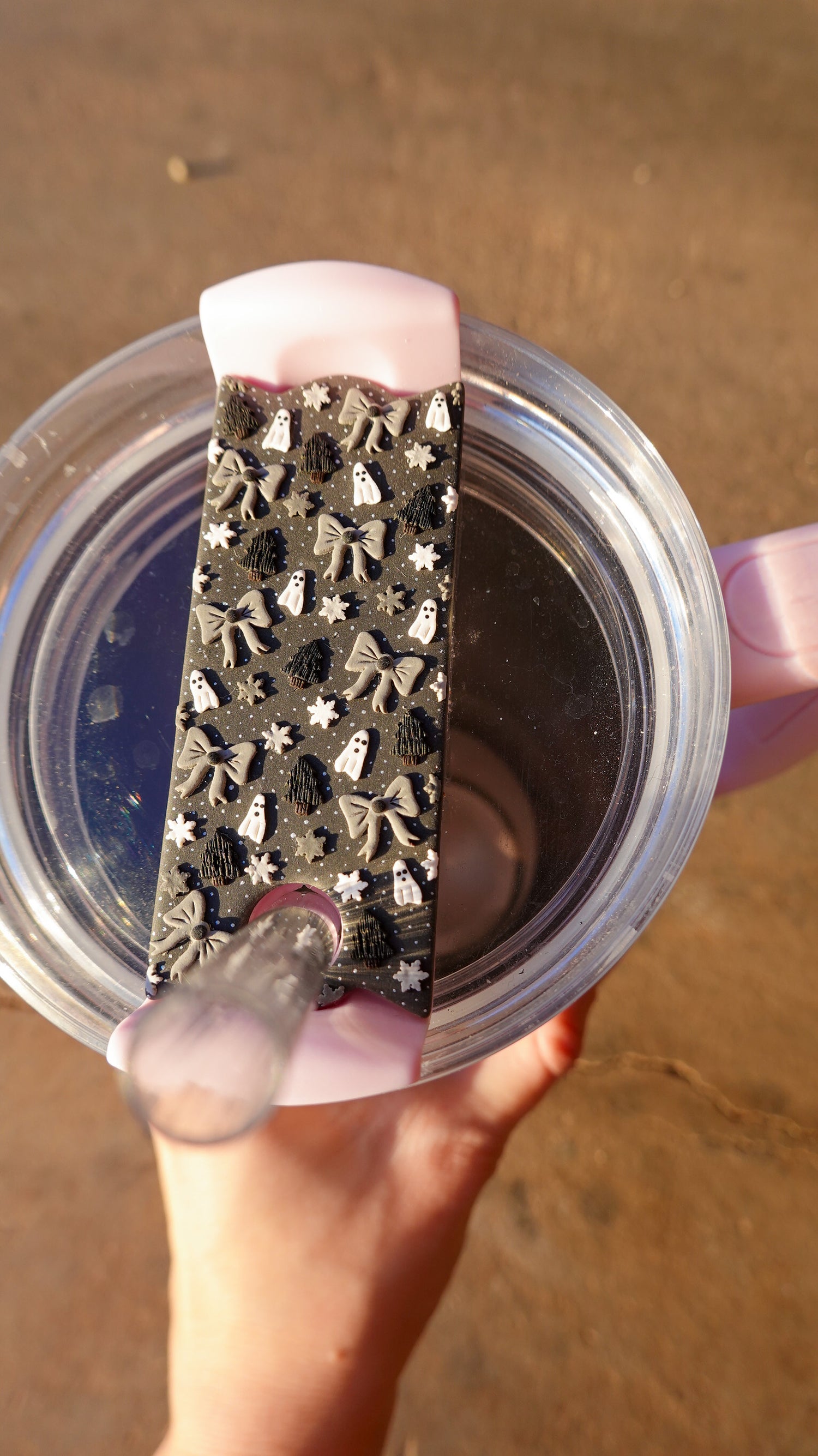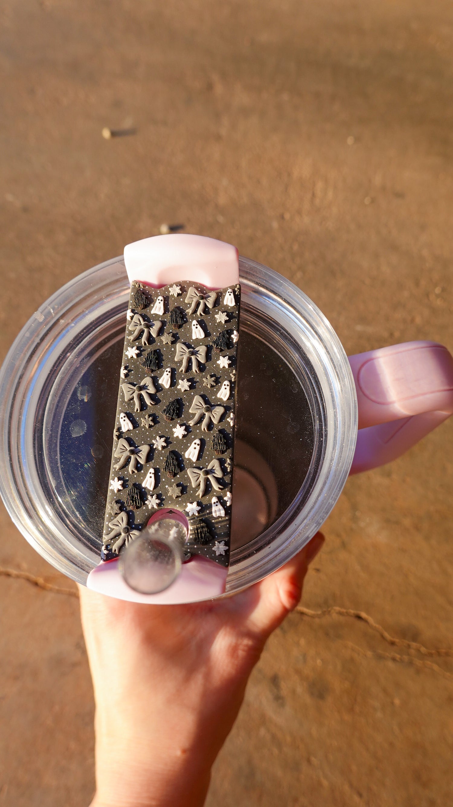 This Creepmas Stanley plate topper is handmade with festive fright in mind. Featuring tiny ghosts, bows, and snowflakes. It’s the perfect accessory for anyone who celebrates both Halloween and Christmas in true creepy-cute style.